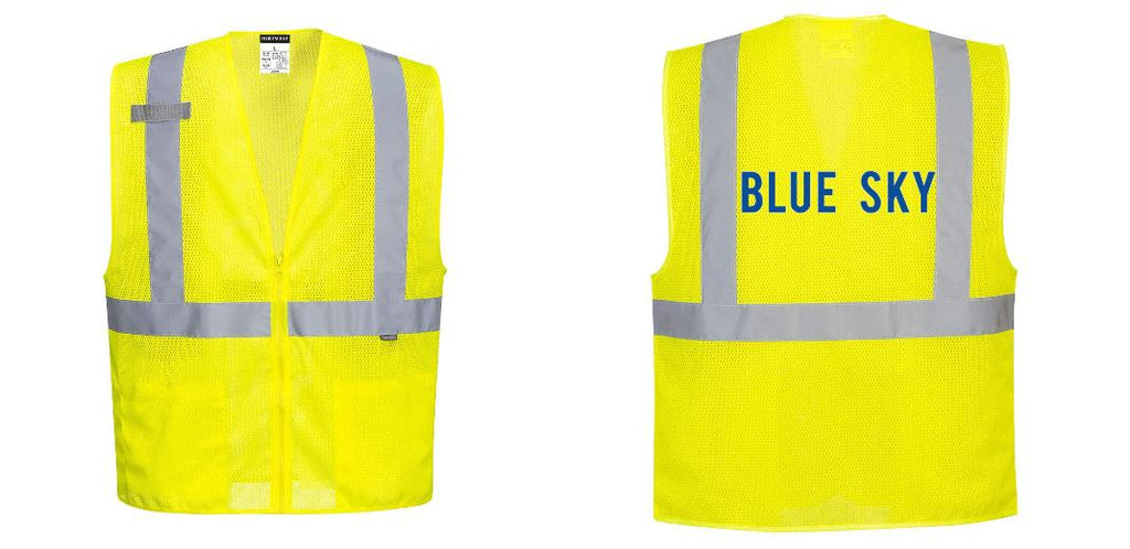 Custom Hi-Vis Yellow Safety Vest – Mesh, Reflective, Zipper Front, ANSI Class 2